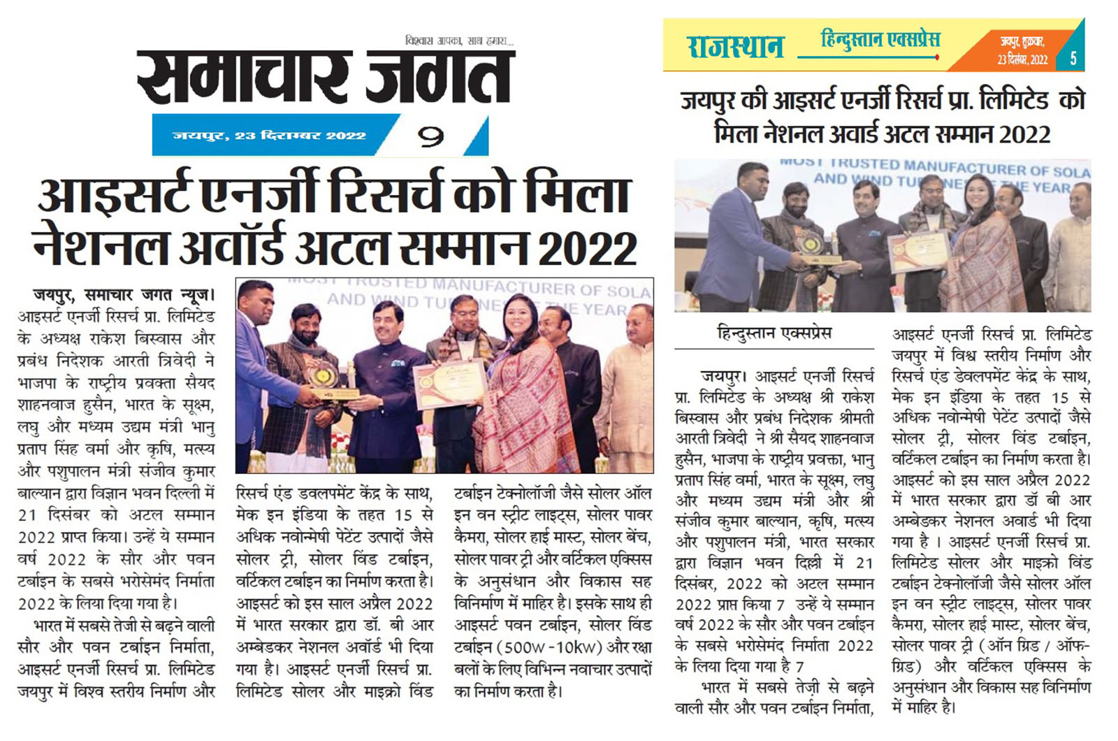 IYSERT RECEIVED NATIONAL AWARD BY GOVERNMENT OF INDIA 2022